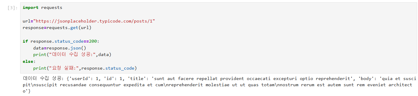 👉 requests.get()으로 외부 데이터를 가져와 JSON 형태로 활용 가능.