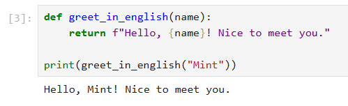 👉 함수를 활용하면 영어 인사문을 반복적으로 출력하거나 변형할 수 있습니다.