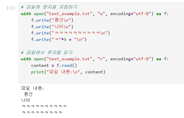 👉 문자 자료형을 파일에 저장하고 다시 불러오는 실전 활용 예제입니다.