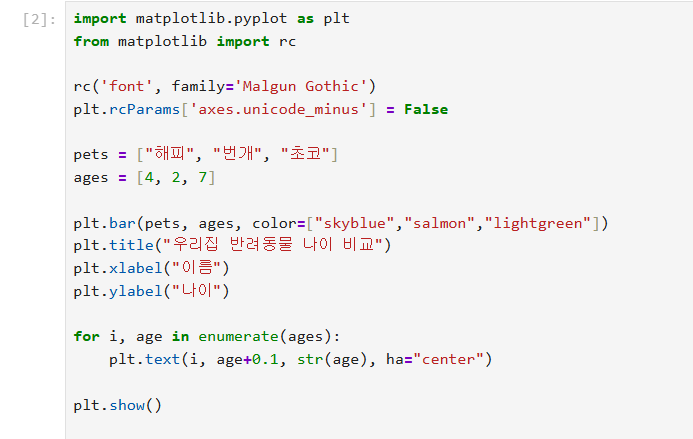 👉 한글 글꼴 설정을 추가해 경고 메시지를 해결하고, 반려동물 나이를 시각화했습니다.